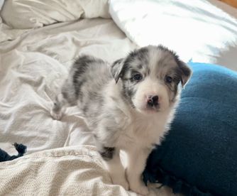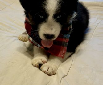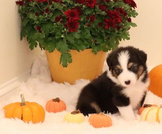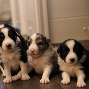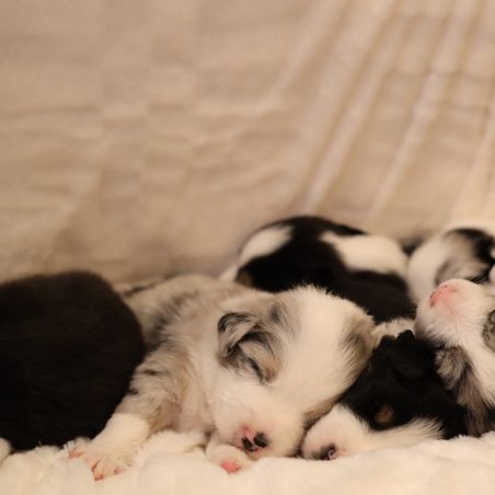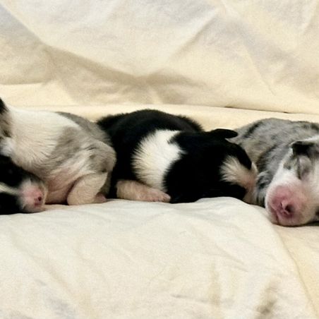 Our puppies include red & white, black & white, red merle, blue merle, dilute blue, and black tri-color. Colors will vary depending on the parent dogs.