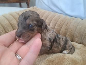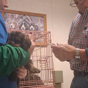 Amy is awesome! Our Sammy is the perfect puppy for our family. He is absolutely adorable and super smart too! In just 3 weeks, Sammy is fully potty trained and crate trained. We are working with him now "to ring his bell" when he needs to go potty outside but as long as we stay on schedule we have not had potty accidents at all. I cannot thank Amy enough for pairing us with this special pup!