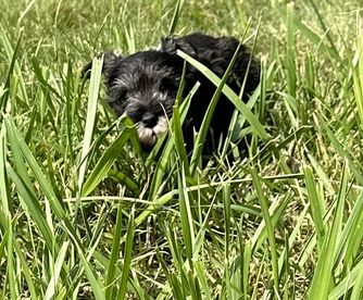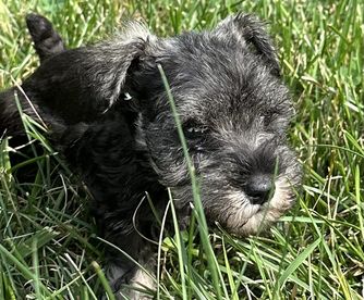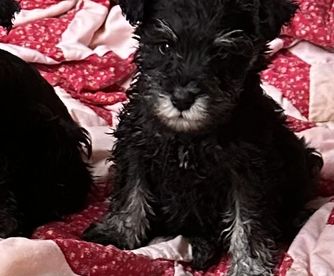 Our Boxer puppies include fawn and brindle. Miniature Schnauzer puppies include black and silver, salt and pepper, and black. Colors will vary depending on the parent dogs.