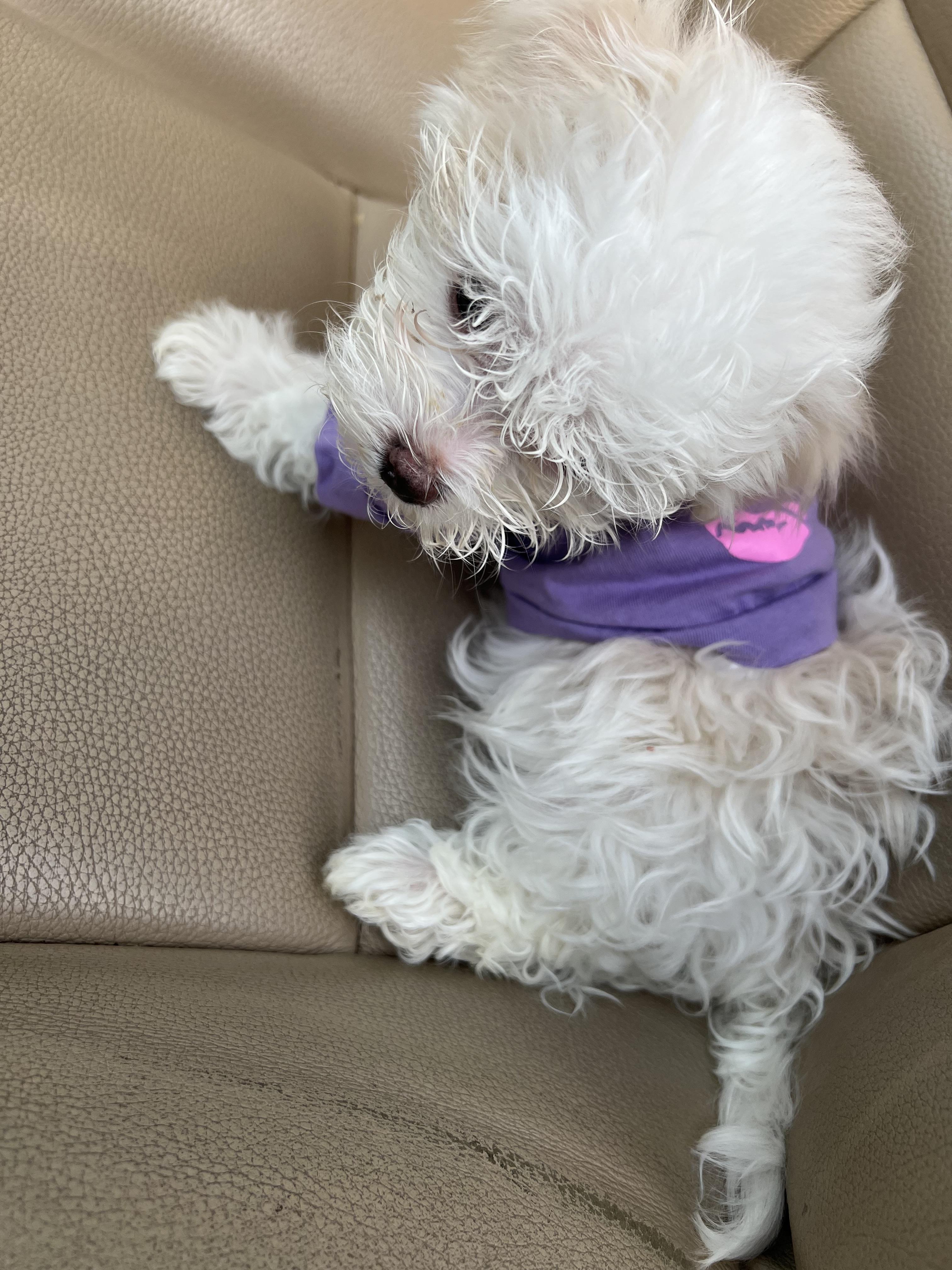 T is a female Maltese. Carefully selected as a great representative of her breed, Deandrea decided to make her part of their program. Deandrea has passed Good Dog’s screening process, which involved a review of their breeding practices, environment, and the mental and physical health of their dogs.