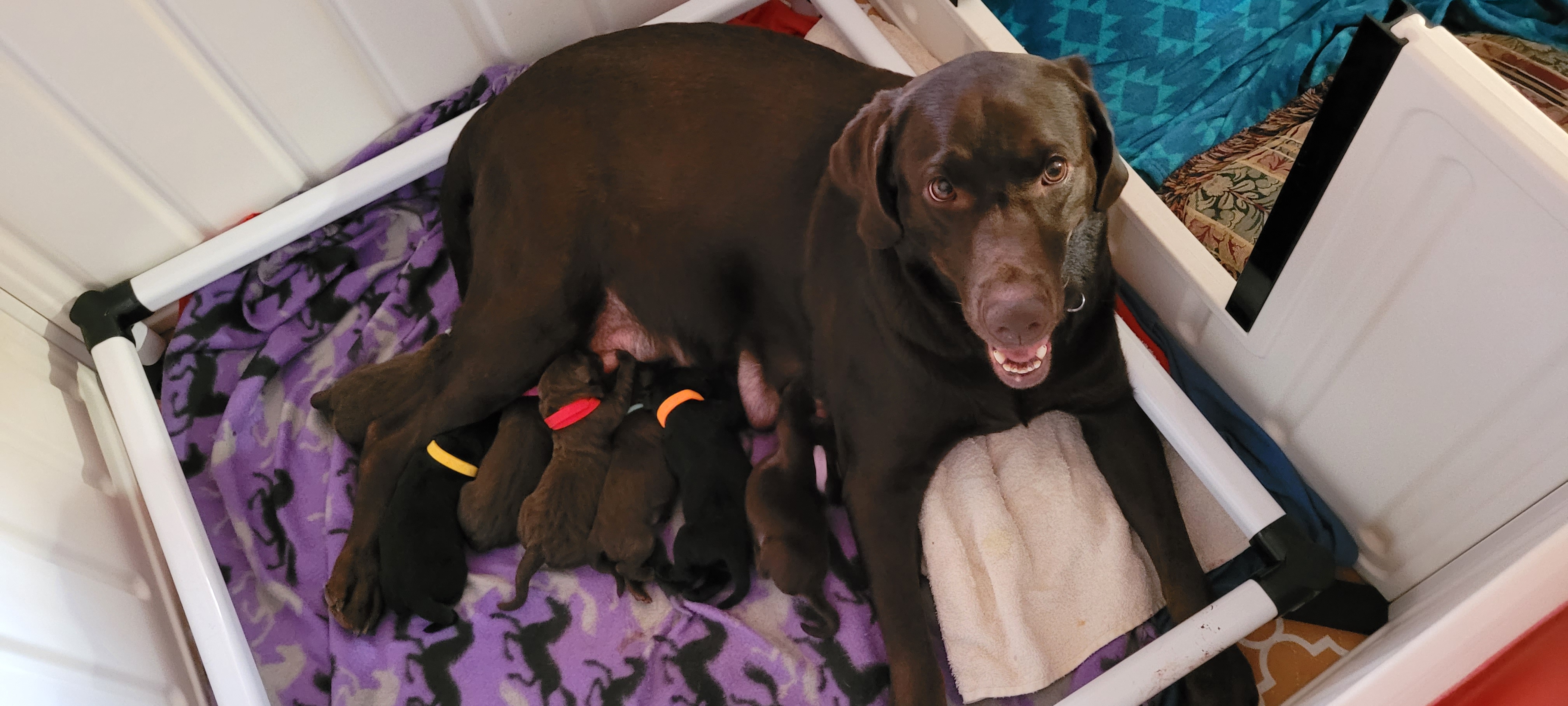 Our puppies include black, chocolate, and yellow. Colors will vary depending on the parent dogs.