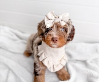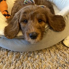 Willow was our first goldendoodle, she proved herself time and time again to be the most gentle and nurturing dog. She was advanced in her training abilities and she was eager to please her humans. All around, she's just the best dog and I knew I wanted everyone to have exactly what we did and so we jumped feet first in and haven't looked back since. Willow is now retired and our personal dog!