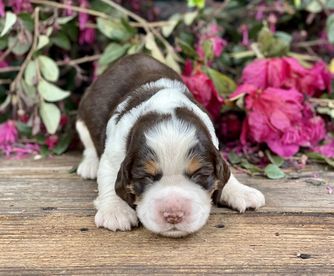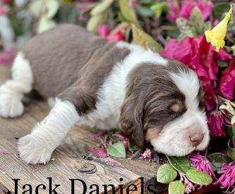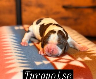 Our puppies include black and white, white and liver, liver white and tan, and black white and tan. Colors will vary depending on the parent dogs.