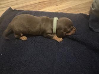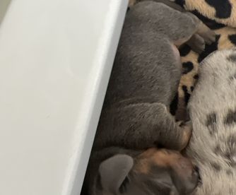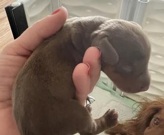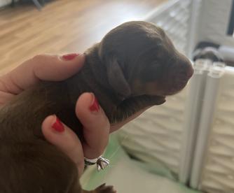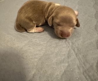 Our puppies include red, chocolate, fawn (isabella) and tan, blue and cream, black and tan, and dapple. Colors will vary depending on the parent dogs.