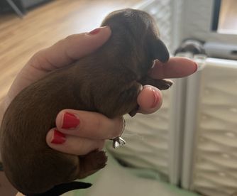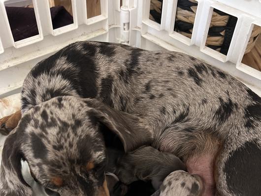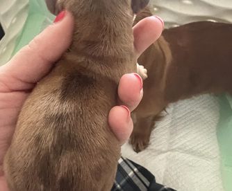Cooper is a male Dachshund. Carefully selected as a great representative of his breed, Kate decided to make him part of their program. Kate has passed Good Dog’s screening process, which involved a review of their breeding practices, environment, and the mental and physical health of their dogs.