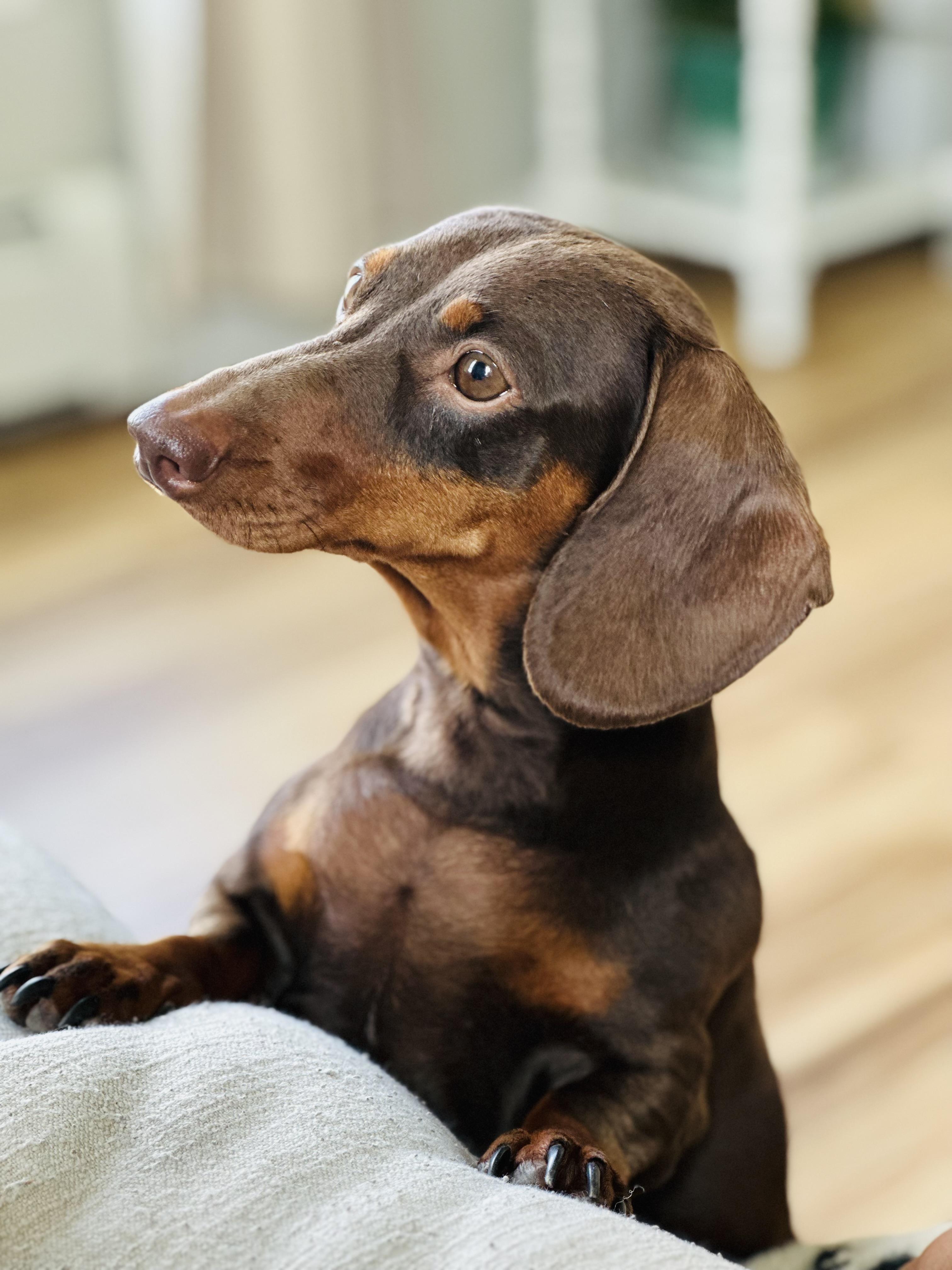 Maggie is a female Dachshund. Carefully selected as a great representative of her breed, Kate decided to make her part of their program. Kate has passed Good Dog’s screening process, which involved a review of their breeding practices, environment, and the mental and physical health of their dogs.