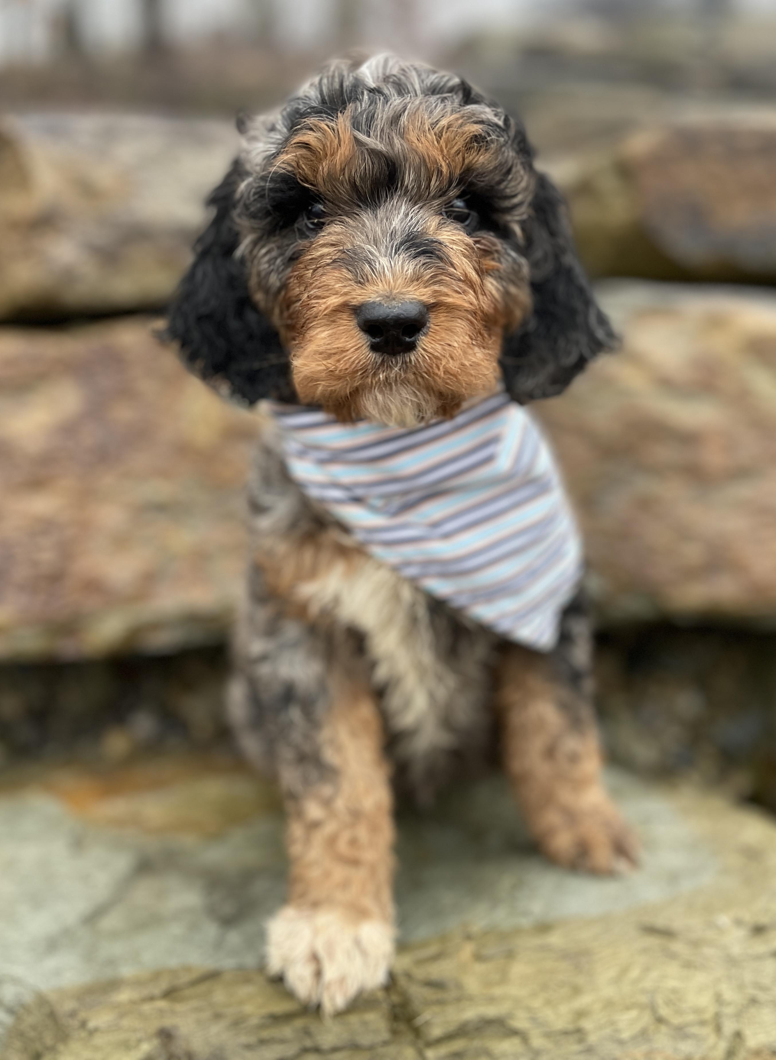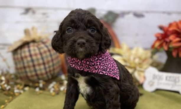 Our Springerdoodle puppies include parti, liver and white, brindle, black, black and white, and brown. Goldendoodle puppies include cream, apricot, chocolate, black, merle, and parti. Colors will vary depending on the parent dogs.