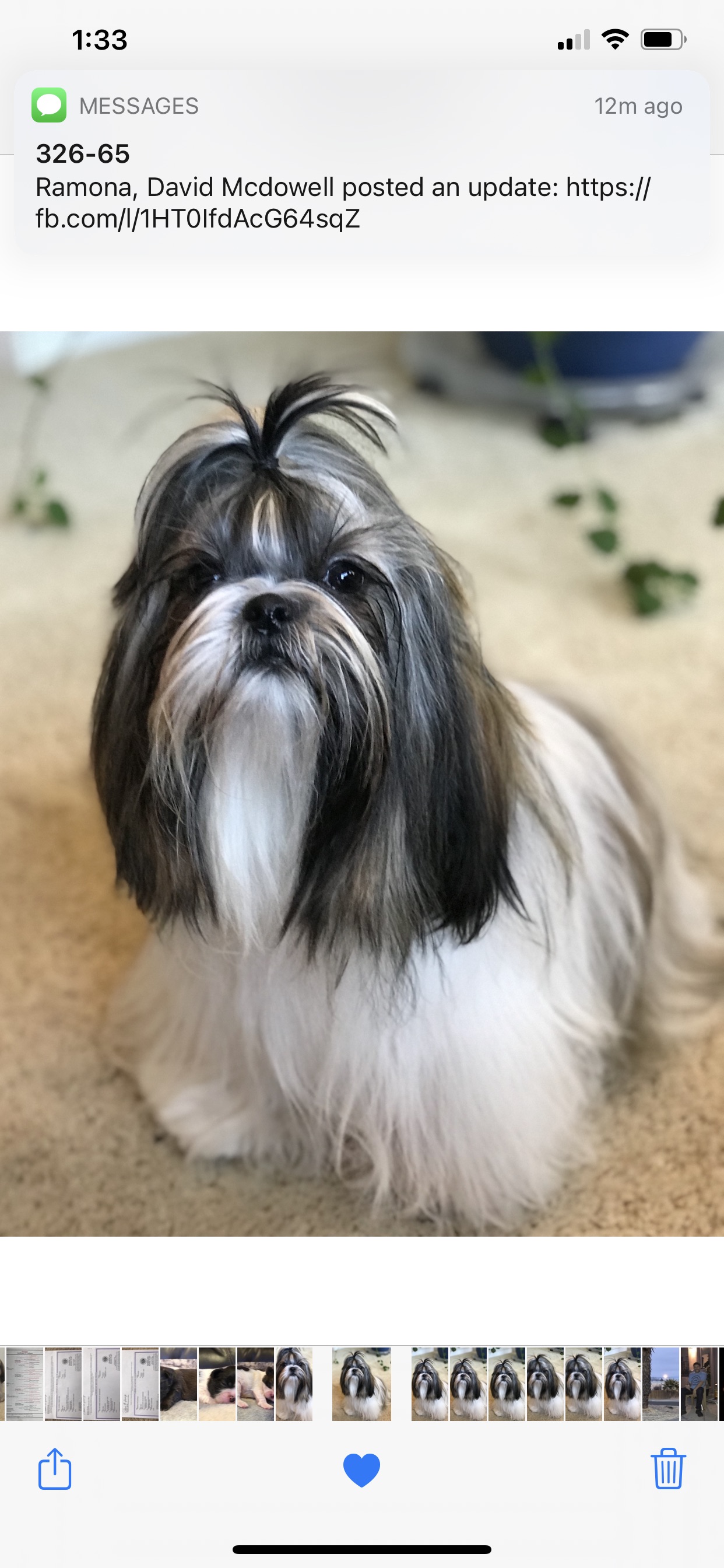 Silver is a male Shih Tzu. Carefully selected as a great representative of his breed, Ramona decided to make him part of their program. Ramona has passed Good Dog’s screening process, which involved a review of their breeding practices, environment, and the mental and physical health of their dogs.