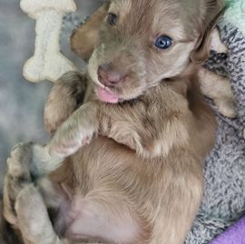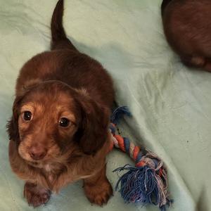 Shawna is one of the best breeders that I have had the pleasure of working with. I have another dog that I purchased from a breeder and although that exchange went smooth, Shawna made the experience of adding another family member to my house hold so easy and even more exciting than it already is. I reached out about the puppy that I was interested in and she responded very swiftly. She was also very personable and I did not feel as if it was a business transaction, rather it was a conversation from one dog lover to another. We set up a video chat so that Shawna could meet us and answer any questions that we might have, she was very thorough in answering all my MANY questions and gave me peace of mind that I had found a breeder that truly cares about all of her puppies. When we decided that the puppy (now named Olive) was going to be the next member of our family, the process was super smooth. We had about 3 weeks to wait to pick Olive up and during that wait time Shawna constantly gave me pictures and videos of my soon to be new family member. That was such an amazing thoughtful thing for her to do. During pick up she had a HUGE goodie bag with all of the "new puppy essentials" including some immune system booster medicine. She also had a separate folder with all of the paperwork consisting of medical records and dates for future shots. She also included pamphlets with advice on what to expect with a new puppy, brands of supplements and so many other helpful things! Although I am not a first time dog owner, nor a first time puppy raiser, having all these extra things included really showed me that she wants the best for her puppies and their families! If I ever add another dachshund to my family I will be reaching out to Shawna. Thank you for giving such love and care into your puppies! It is so nice to have the peace of mind that I am getting a dog with no prior heath conditions, or genetic diseases that could potentially pre-maturely take her away from me. It is also so great to know that my puppy has parents and and grandparents that have good behavior. Again thank you so much for all the care that you put into your puppies!