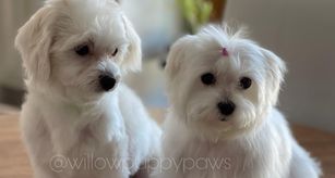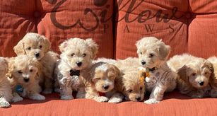 Our Maltese puppies are white. Goldendoodle puppies include cream and apricot. Colors will vary depending on the parent dogs.