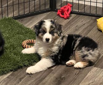 Our puppies are blue merle. Colors will vary depending on the parent dogs.