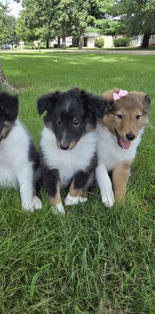 Sheltie puppies had the cutest photoshoot today and they got to explore the outdoors again!! They love playing in the grass and chasing after momma!! 🥰🥰🥰