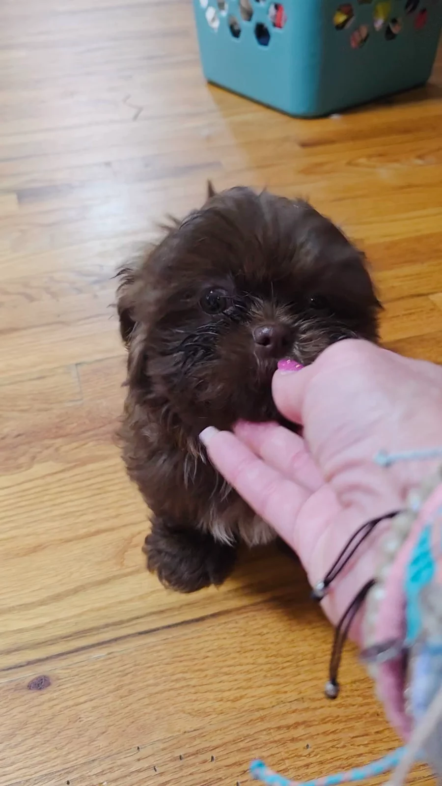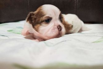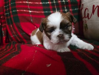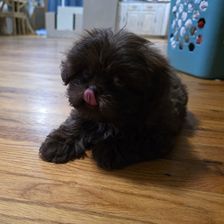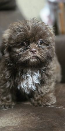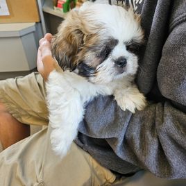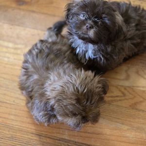 Our Shih Tzu puppies include black, liver, silver, and brindle. Shichon puppies include brown, cream, and black and white. Colors will vary depending on the parent dogs.