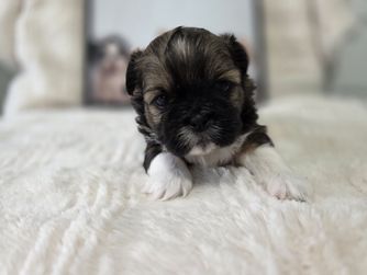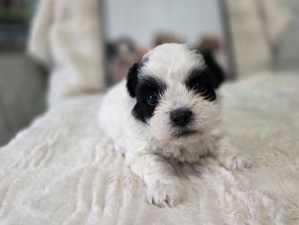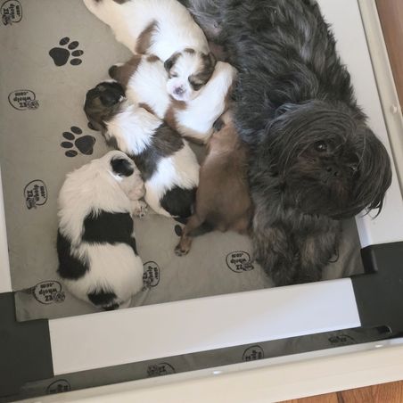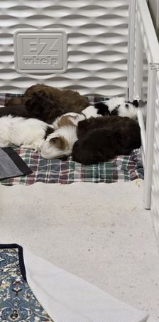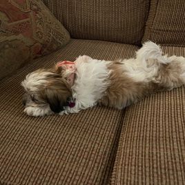 Misty was very responsive and helpful every step of the journey. She did an outstanding job of socializing and getting Henry ready for his trip to our home. She truly cares about her puppies and does all she can to make sure they are healthy and well rounded. Henry is a sweet boy with a fantastic temperament. He’s 5 months old now and weighs 11.2 pounds. He’s happy and healthy. Full of life and very smart. His training is going well and he’s very motivated to please us. He loves our grandchildren and wants to be around people all the time. He likes meeting new people and other animals. He’s very friendly. Misty did a great job for us and I highly recommend her if you want a Shichon. Very cute and sweet dogs.
