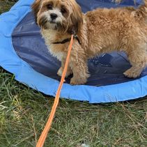 Opie hanging with me at the pool!