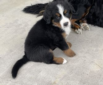 Bernese Mountain Dog puppies include rust and white, black tan and white, and black rust and white. Colors will vary depending on the parent dogs.