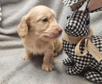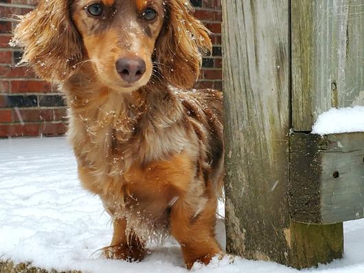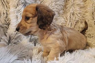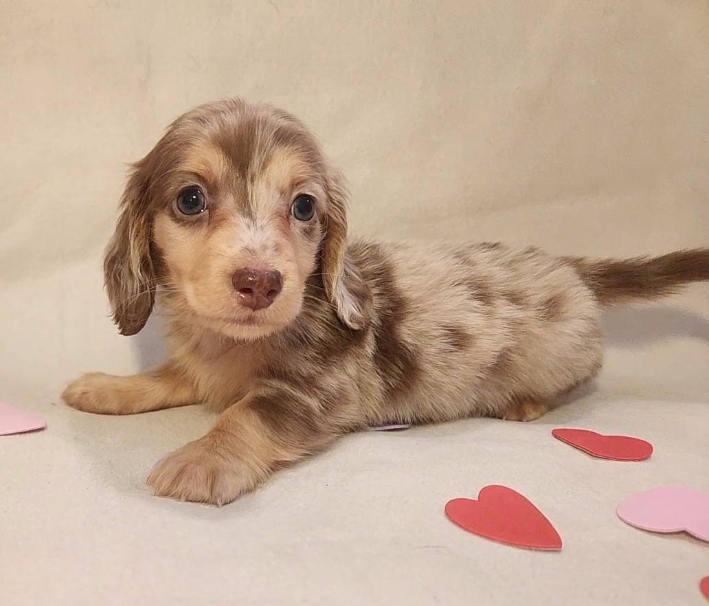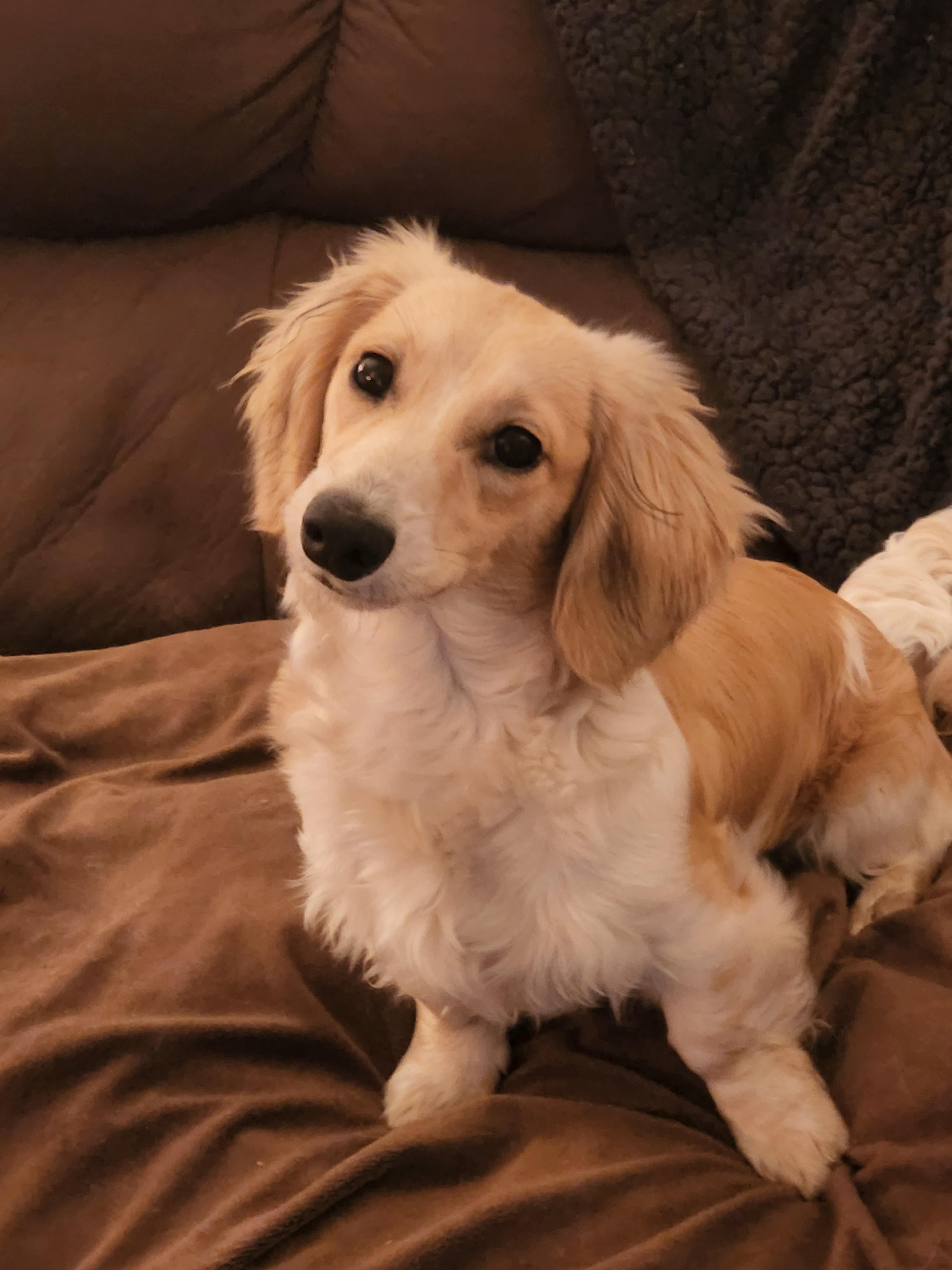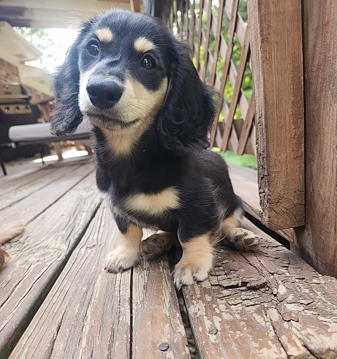 Remy is a chocolate and cream longhaired mini dachshund. He is my adult daughter's forever dog, and the love of her life. He was raised in a dorm, and is very social. He is gorgeous and enjoys being spoiled on his many adventures! There is something about boy dogs keeping their puppy love and loyalty, and he certainly does!