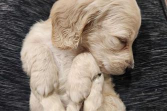 Riley is a very athletic shaded cream piebald. She has always been friendly with other puppies, and has been a wonderful mother to previous litters.