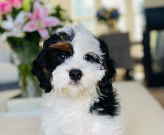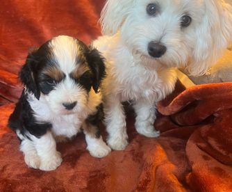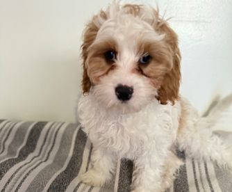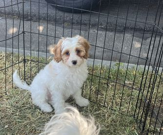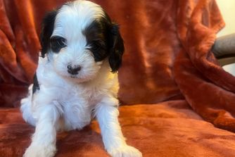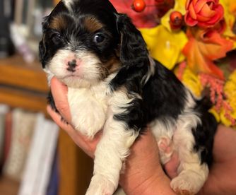 Our Cavalier King Charles Spaniel puppies include blenheim, black and white, and tri-color. Cavapoo puppies include tri-color, black and white, and black and tan. Maltipoo puppies include black, white, black & tan tri-color, and black & tan. Poodle puppies include black and white. Colors will vary depending on the parent dogs.