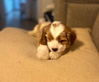 Delaine was so easy to work with and you can really tell our puppy came from a loving home! I reached out to Delaine from our home in California and was able to reserve Bear, a 3 month old cavapoo, even though I wouldn't be heading to Utah on a family visit for a couple more weeks. Delaine met us halfway between where we were staying and her house, and would have brought him all the way to California if we had wanted! We renamed our puppy Ollie and set out on a road trip home the very next day. He travelled so well and just seemed to love riding in the car between my two daughters the whole 10 hours! He didn't even have any accidents and has clearly already had some house training because he pottied at our stops on pretty much any grass patch we brought him to. He is the most loving little guy and settled in with our family from pretty much the moment Delaine handed him to us!