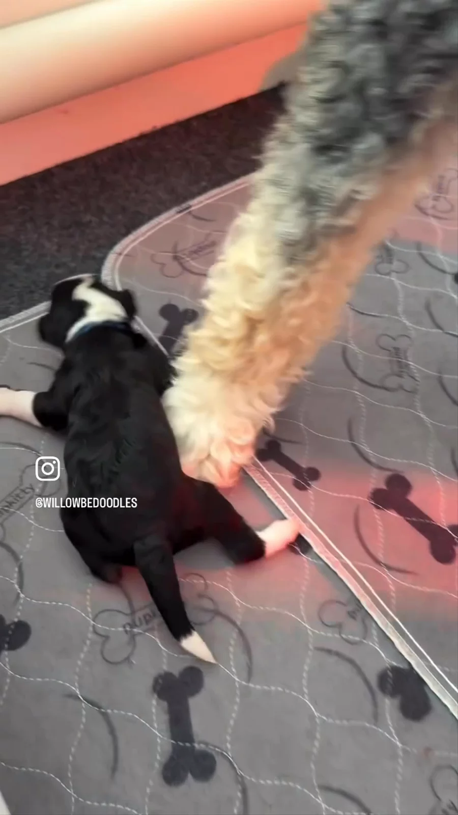 Puppies are 3 weeks old today and learning to stretch their legs and explore! Their mama Willow is the most patient and loving girl.