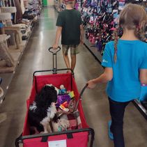 My 12yo son and I have decided to train our guy to become a therapy dog, and he is well on his way towards meeting this goal. He arrived completely crate and potty trained and learned all basic commands within a few days. Within a couple of weeks, he was ready to venture out and behaved perfectly on the leash around strangers and other animals. He has been welcomed into a variety of stores, joined us on a kayaking trip (with a guide who was extremely nervous at first but who, sooner than later, fell in love with our pup and said he hoped to see us again), has gone on camping trips and just about a million car rides, and has handled every single adventure beautifully. He has been a totally non-reactive dog from the start - he's watched (or slept through) more than one fireworks show, he sleeps through thunderstorms, is totally chill while kids are running around playing and slamming doors, while instruments are being played and chainsaws or vacuums are running, and he doesn't flinch during baths. We have been prepping him for vet and groomer visits. He allows me to brush every part of him without a care, he opens his mouth on command and patiently waits for me to check his teeth, and I can lift his rear end off the floor and poke around at his paws and ears without any resistance. He even rolls over onto his back to let me see his belly. At our last vet visit, the doctor said we had clearly found a top-notch, high-caliber breeder.