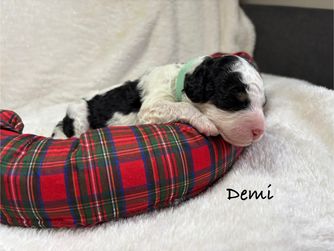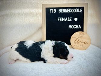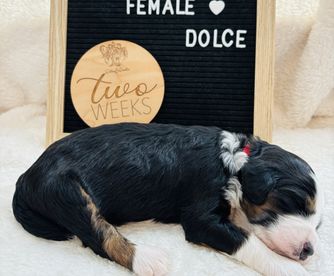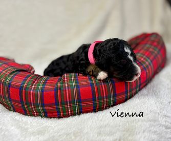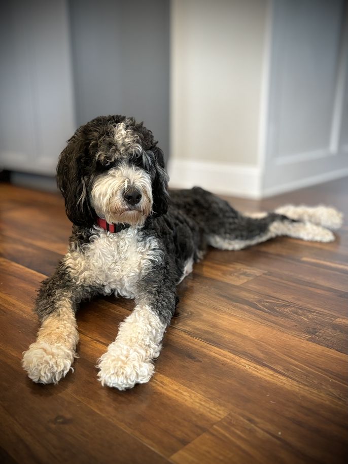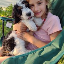 Stella, our loving Standard F1 Bernedoodle, is truly a cherished member of our family. She spends her days lounging in the living room, keeping a watchful eye on the household, or playing in the yard with the kids and her doodle sisters. With her warm and friendly personality, Stella greets everyone she meets with affection. She has a calm, gentle temperament and enjoys the simple things in life like walks and car rides. Her sweet spirit brings so much love to our home.