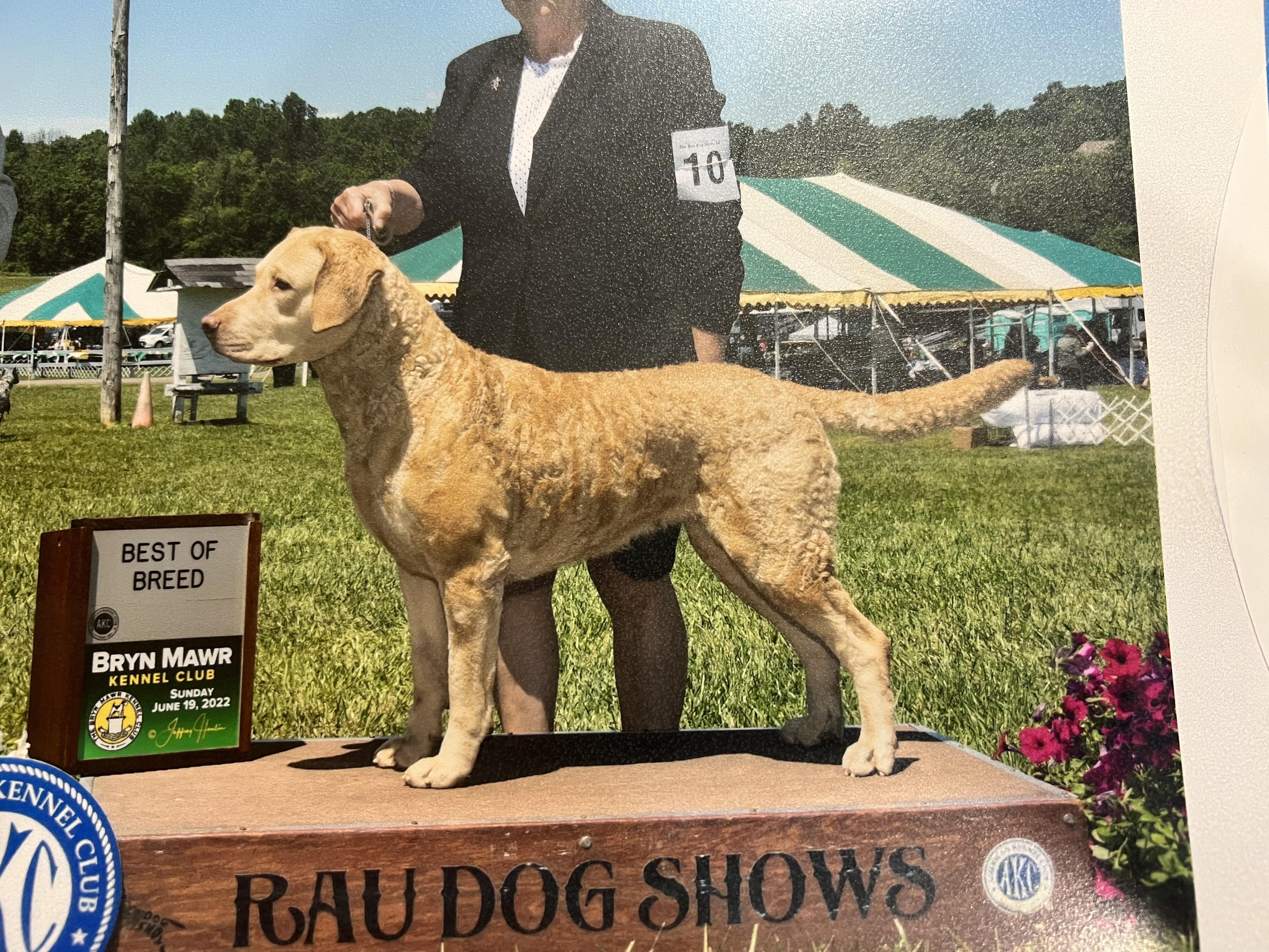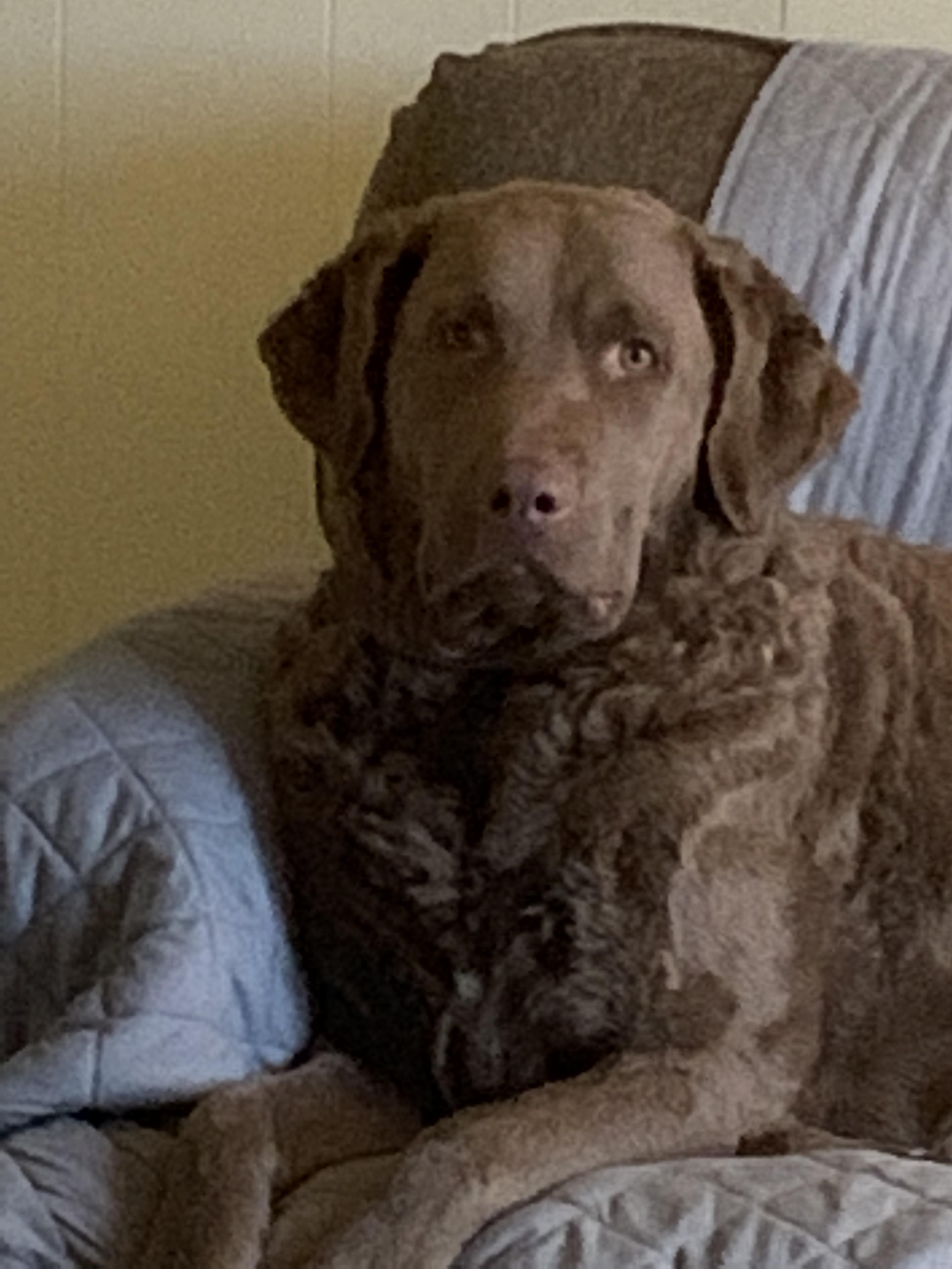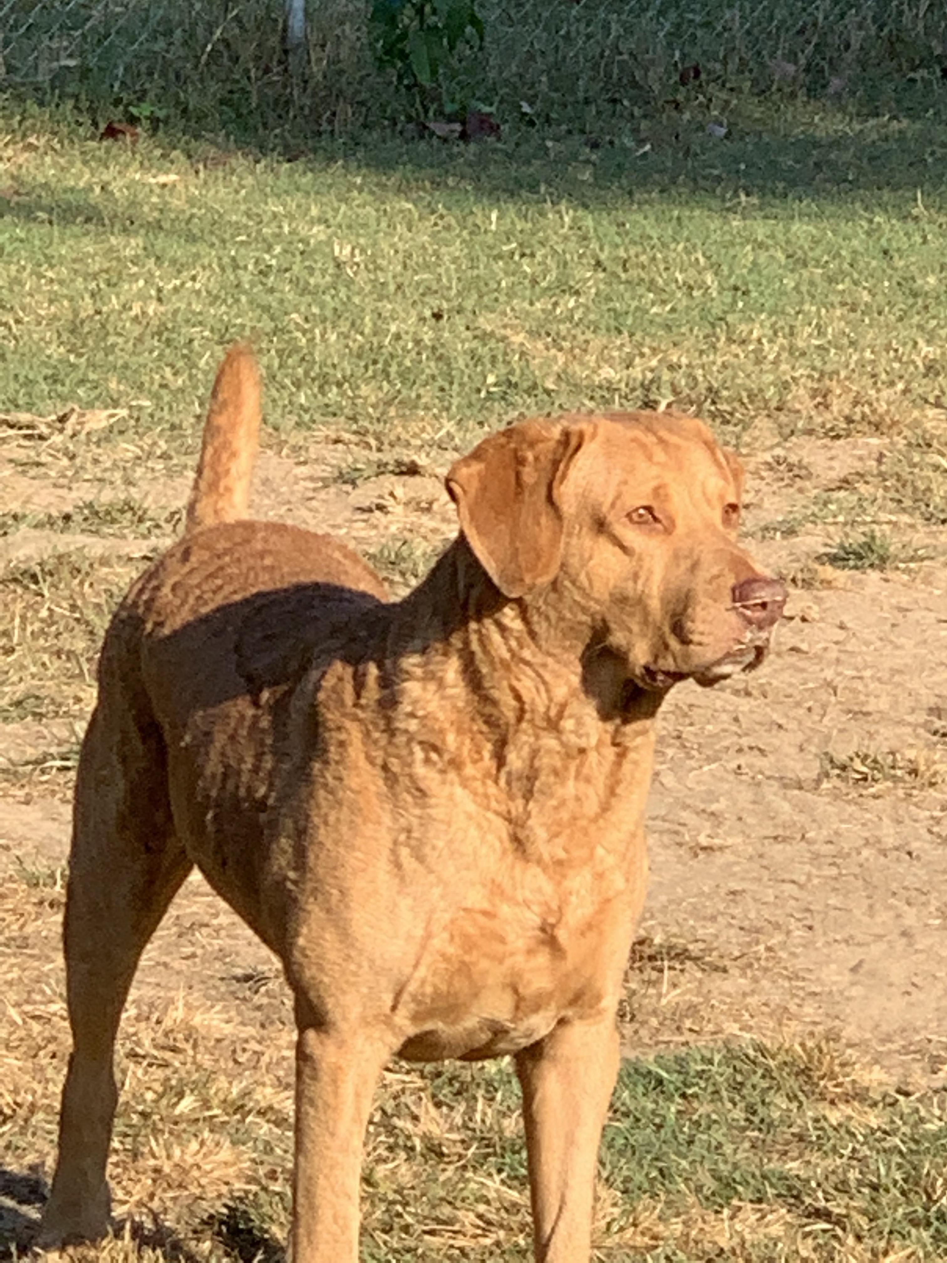 Whiskey is a female Chesapeake Bay Retriever. Carefully selected as a great representative of her breed, Val decided to make her part of their program. Val has passed Good Dog’s screening process, which involved a review of their breeding practices, environment, and the mental and physical health of their dogs.