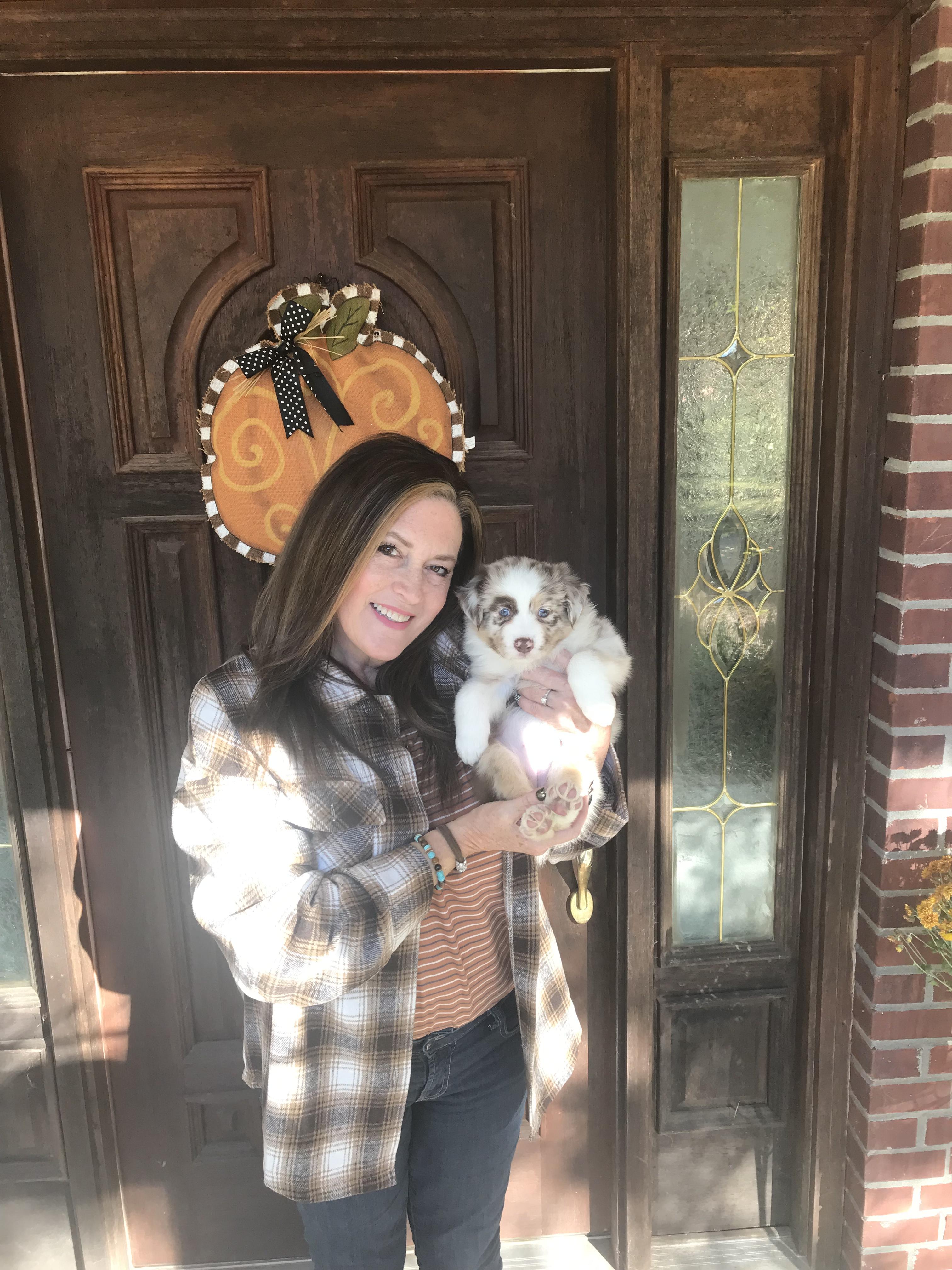 Our puppies are red merle. Colors will vary depending on the parent dogs.