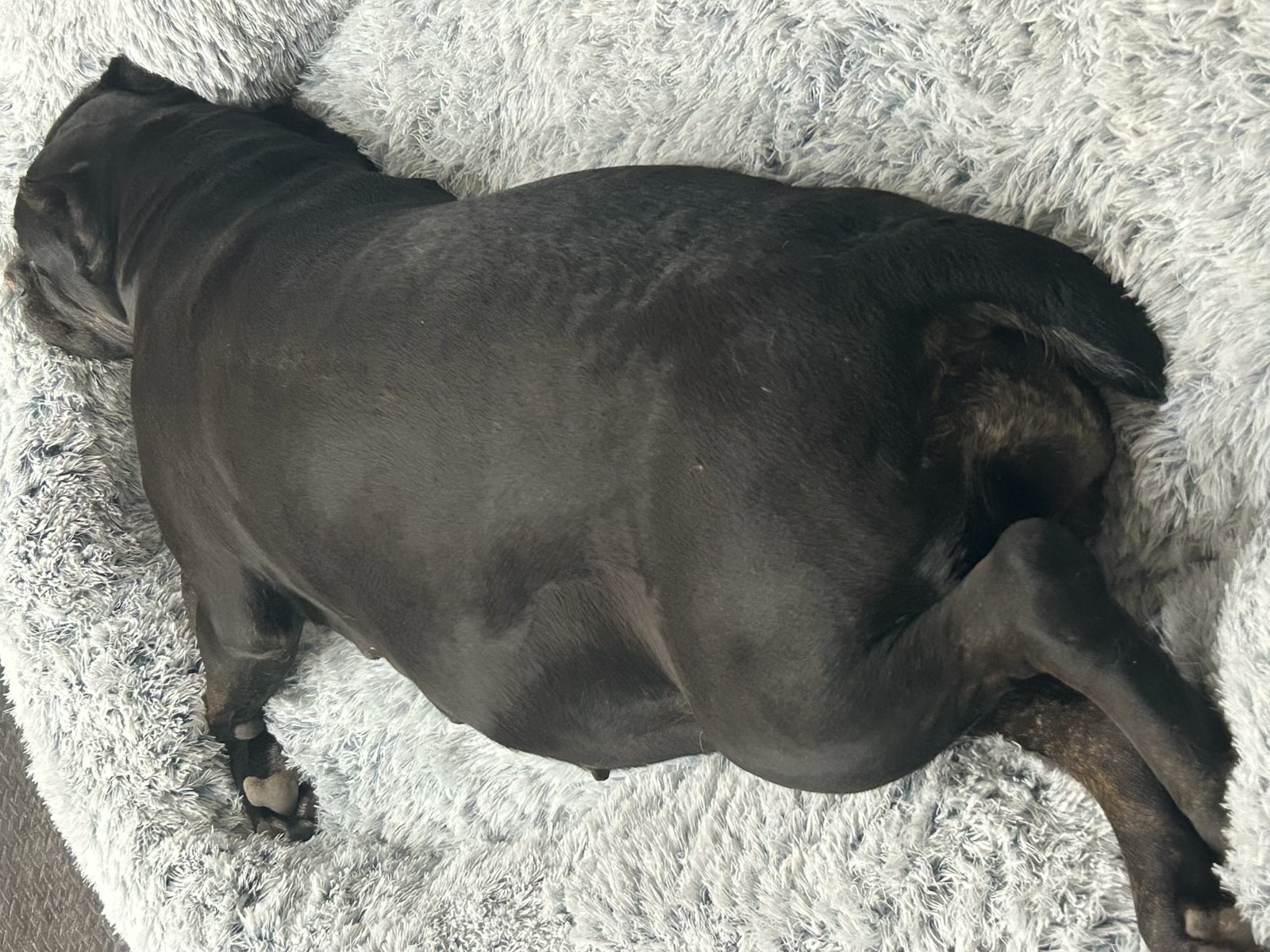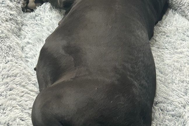 Freyja is a laid back fun playful 3 year old black brindle. She still carries her bear from a puppy everywhere she goes. She has had 1 litter so far and is an amazing mother to her pups.