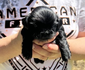 Our puppies include black, liver, blue, silver, gold and white, and black and white. Colors will vary depending on the parent dogs.