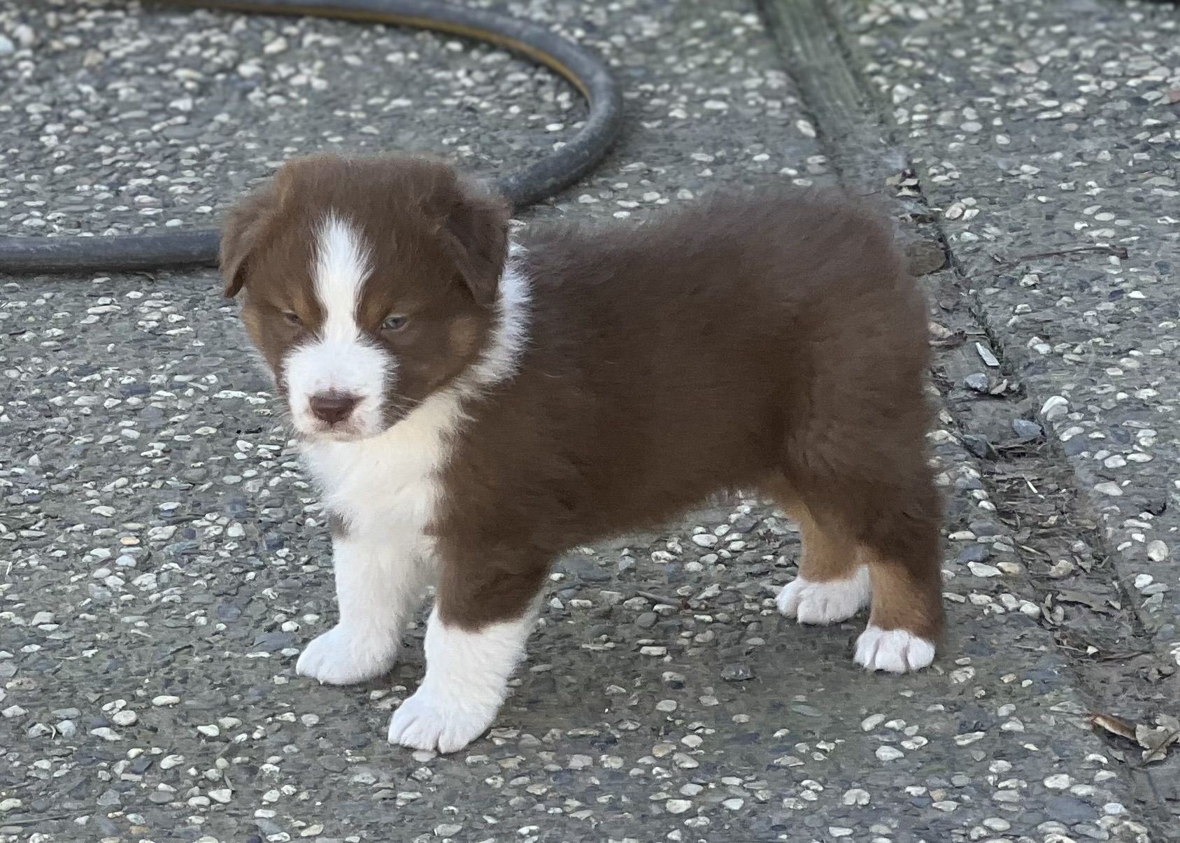Our puppies include red merle, blue merle, black tri-color, and red tri-color. Colors will vary depending on the parent dogs.