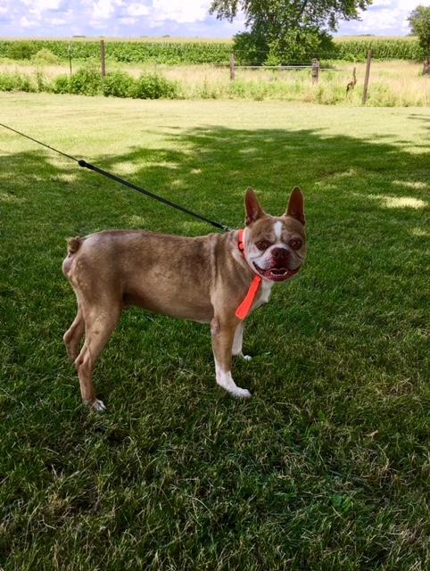 Pepper is a female Boston Terrier. Carefully selected as a great representative of her breed, Tina decided to make her part of their program. Tina has passed Good Dog’s screening process, which involved a review of their breeding practices, environment, and the mental and physical health of their dogs.