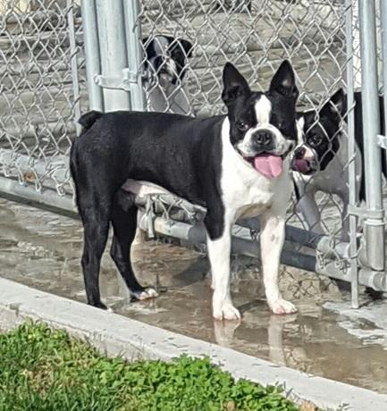 Tyler is a male Boston Terrier. Carefully selected as a great representative of his breed, Tina decided to make him part of their program. Tina has passed Good Dog’s screening process, which involved a review of their breeding practices, environment, and the mental and physical health of their dogs.