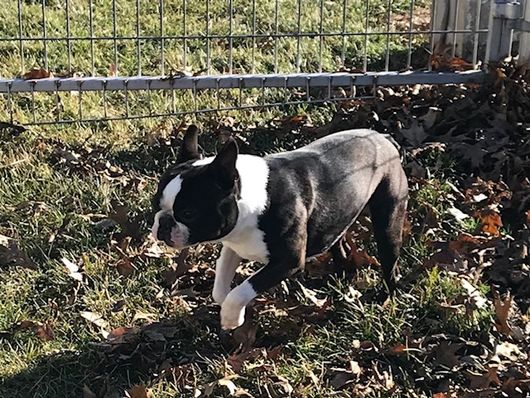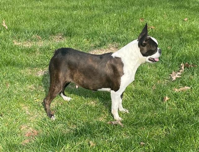 Jinx is a gorgeous Boston with a nice body composition. He is a playful healthy boy and a great addition to Wind Hill's breeding program.