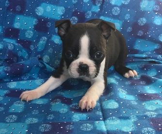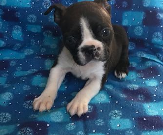 Our Boston Terrier puppies include seal brindle and white, seal and white, brindle and white, black brindle and white, and black and white. Colors will vary depending on the parent dogs.