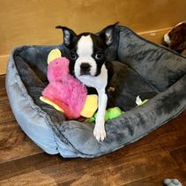 Axle is a male Boston Terrier. Carefully selected as a great representative of his breed, Tina decided to make him part of their program. Tina has passed Good Dog’s screening process, which involved a review of their breeding practices, environment, and the mental and physical health of their dogs.