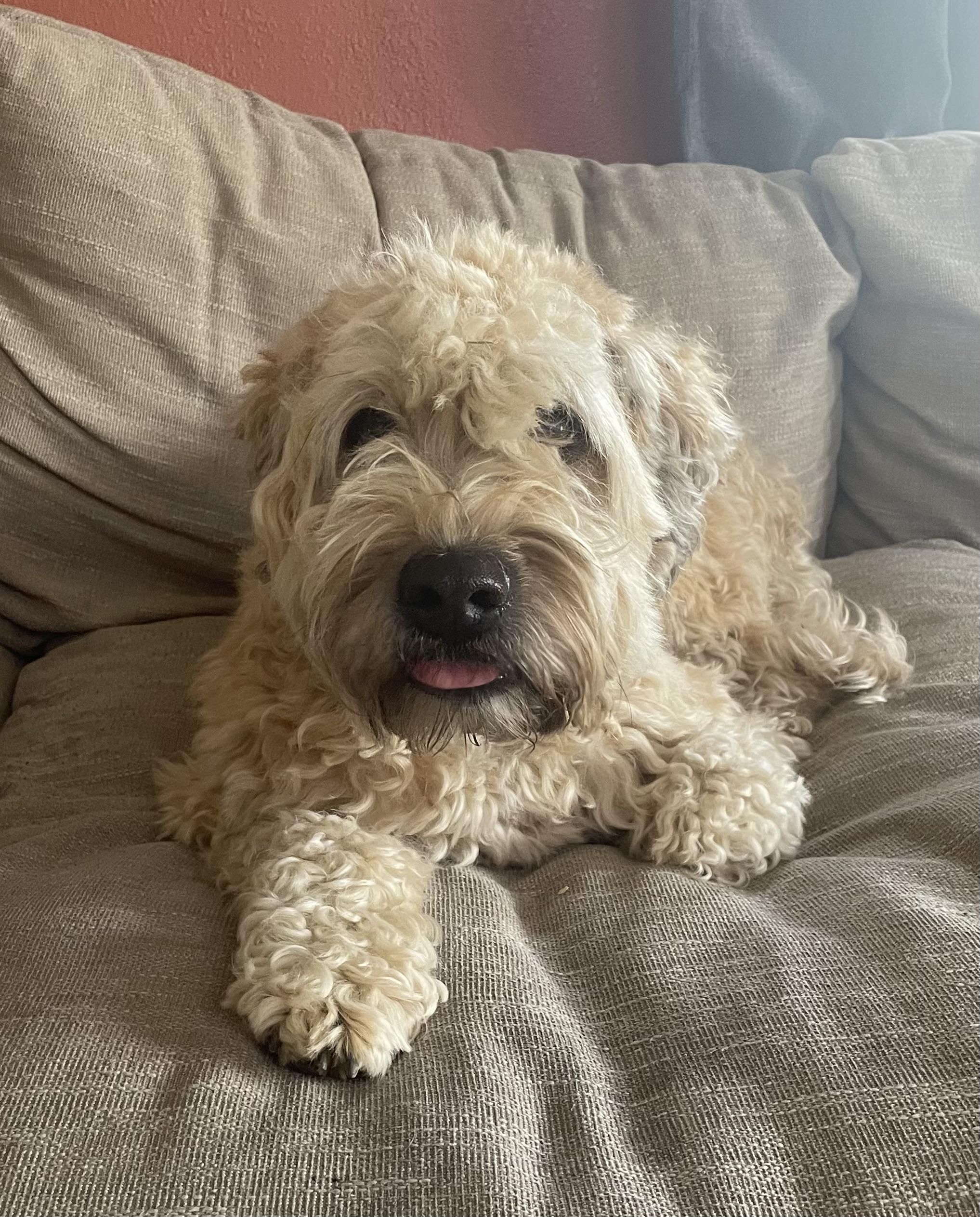 Blanche is a female Soft Coated Wheaten Terrier. Carefully selected as a great representative of her breed, Caitlin decided to make her part of their program. Caitlin has passed Good Dog’s screening process, which involved a review of their breeding practices, environment, and the mental and physical health of their dogs.