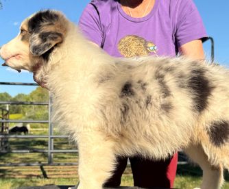 Our puppies include black and blue merle. Colors will vary depending on the parent dogs.