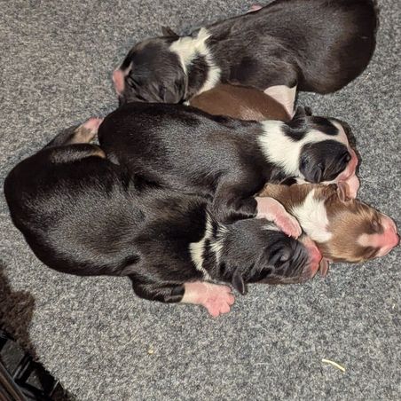 “Price includes AKC pre-paid registration and AKC Reunite enrolled microchips. All puppies receive a puppy wellness exam with our vet at which time they receive a DAPP vaccination, Drontal dewormer, and Simparica Trio Flea/Tick/Heartworm preventative. Dew claws will be removed and tails will be docked UNLESS a buyer on our wait-list wants a puppy with a full tail. In this case we will require a $500 non-refundable deposit. Deposits are required to make an appointment. Deposits can be transferred to another litter but are non-refundable unless breeder decides not to sell reserved puppy.”