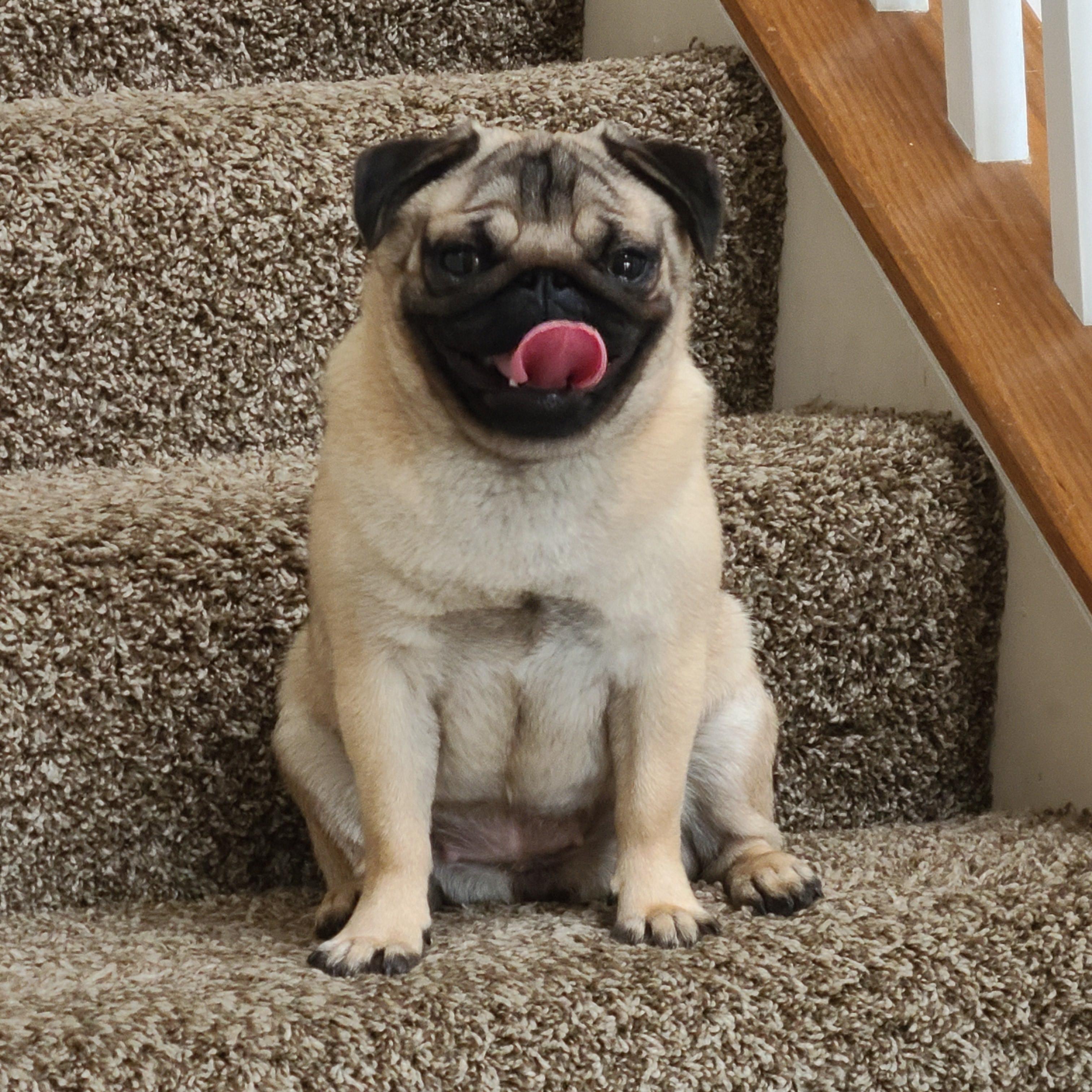 Simon is a male Pug. Carefully selected as a great representative of his breed, Seth decided to make him part of their program. Seth has passed Good Dog’s screening process, which involved a review of their breeding practices, environment, and the mental and physical health of their dogs.