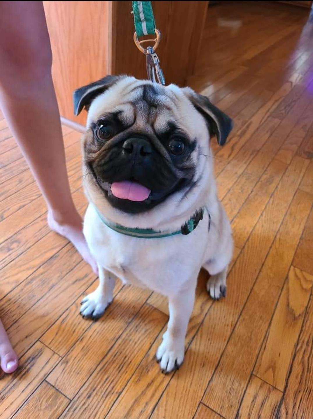 Peaches is a female Pug. Carefully selected as a great representative of her breed, Seth decided to make her part of their program. Seth has passed Good Dog’s screening process, which involved a review of their breeding practices, environment, and the mental and physical health of their dogs.