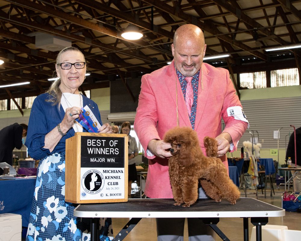 I wanted to produce better red poodles that were square and kept their dark color. I kept seeing poorly bred dogs being offered out there and fell in love when I attended dog shows.