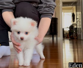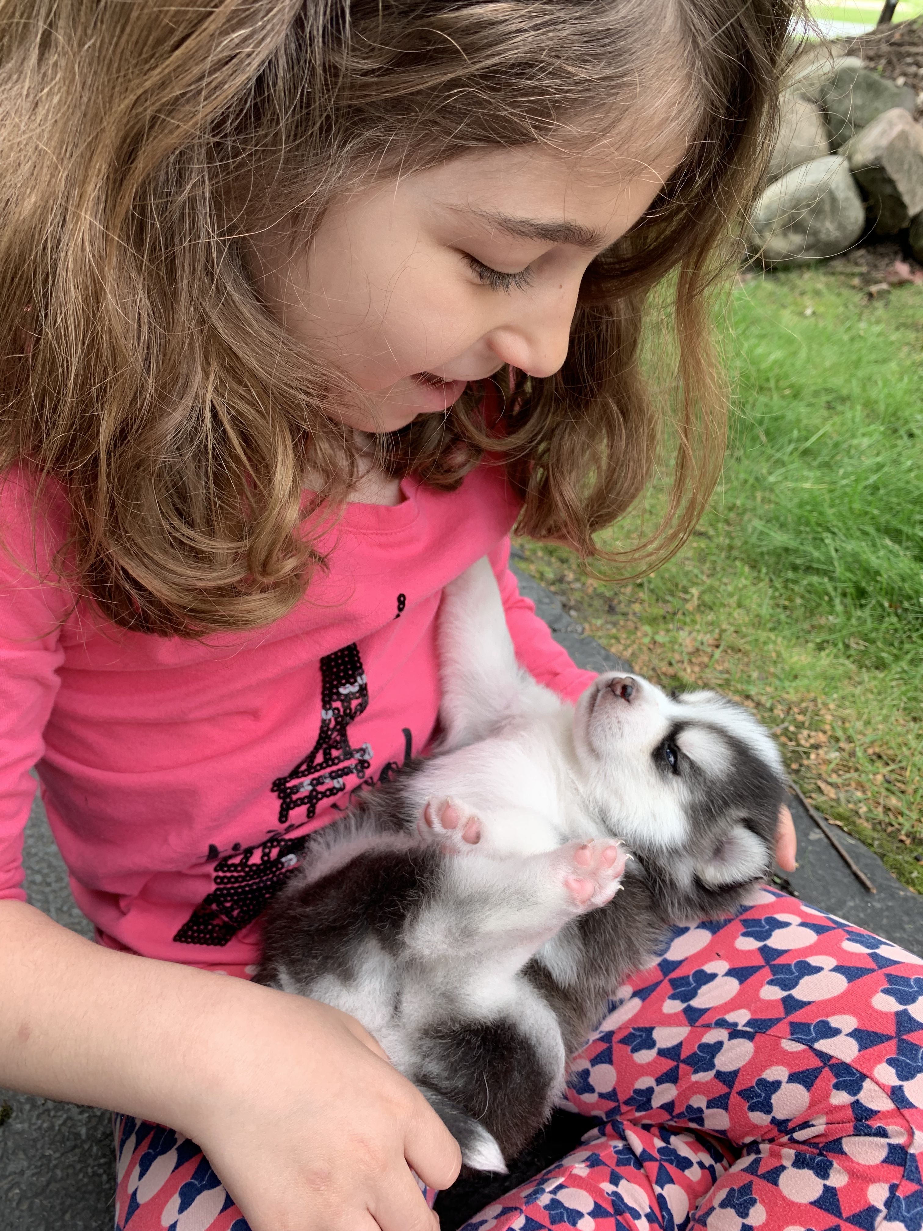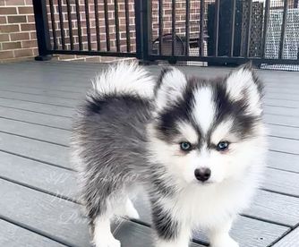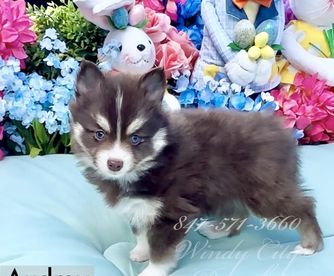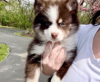 I'm Eva I., the breeder behind Windy City Pomsky located in Long Grove, IL. Breeding Pomskies is our passion! We only want to breed healthy, happy puppies, so all breeding dogs are Embark DNA tested. Our puppies are raised using the Puppy Culture protocol. They get constant socialization from our other adult dogs, kids, and adults. Our focus is to raise puppies that will transition to your home as easily as possible. It would be our pleasure to introduce your family to your next Pomsky!
