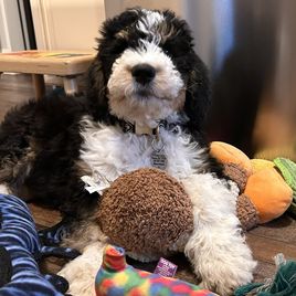 We had he best experience getting out Bernedoodle puppy though Tracey and Windy Creek Doodles. Tracey's communication was unmatched and made us feel like we were her only client. Our puppy was in great health and well on the way to being trained, even before we got him. We also appreciated the piece of mind that came with knowing the parent dogs were genetically tested and well cared for. We opted for the meet-halfway drop off method and that was well worth it and trouble-free. Finally, our new puppy Rocky is the best boy and we are so happy that he joined our family. Would highly recommend to anyone looking for a new, amazing pet!