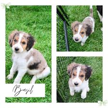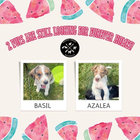Our puppies include brown and white, brown, black and white, tri-color, and merle. Colors will vary depending on the parent dogs.