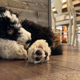 We had he best experience getting out Bernedoodle puppy though Tracey and Windy Creek Doodles. Tracey's communication was unmatched and made us feel like we were her only client. Our puppy was in great health and well on the way to being trained, even before we got him. We also appreciated the piece of mind that came with knowing the parent dogs were genetically tested and well cared for. We opted for the meet-halfway drop off method and that was well worth it and trouble-free. Finally, our new puppy Rocky is the best boy and we are so happy that he joined our family. Would highly recommend to anyone looking for a new, amazing pet!