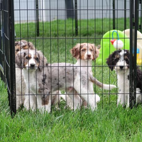 Our puppies include brown and white, brown, black and white, tri-color, and merle. Colors will vary depending on the parent dogs.