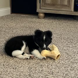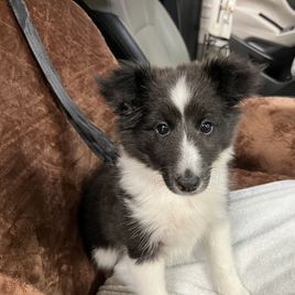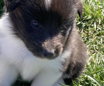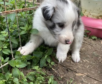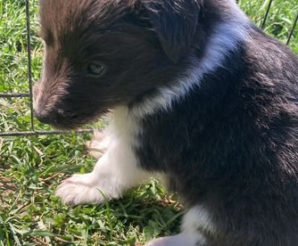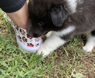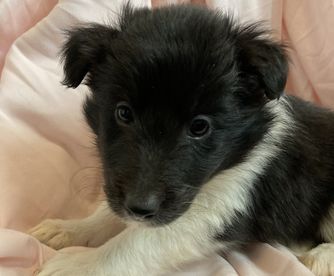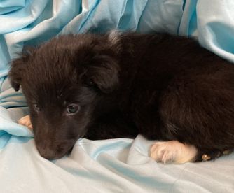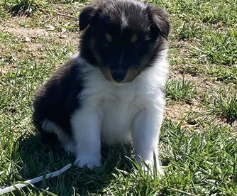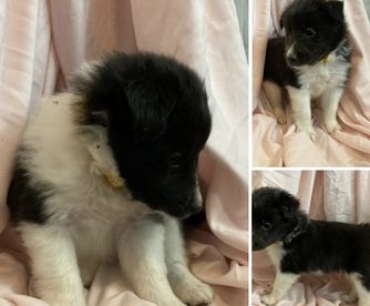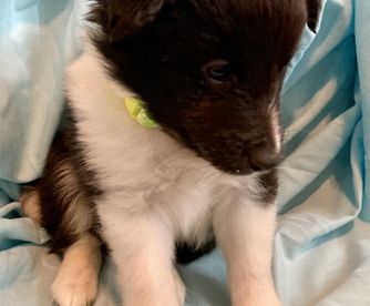 Our puppies include white and black, sable and white, sable merle and white, blue merle and white, black white and tan, and black and white. Colors will vary depending on the parent dogs.