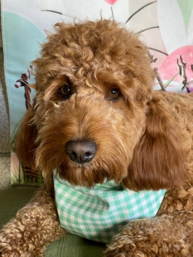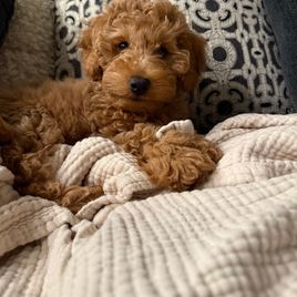 Zeldie is a beautiful Goldendoodle with a sweet personality. Very affectionate and friendly and a devoted mom.